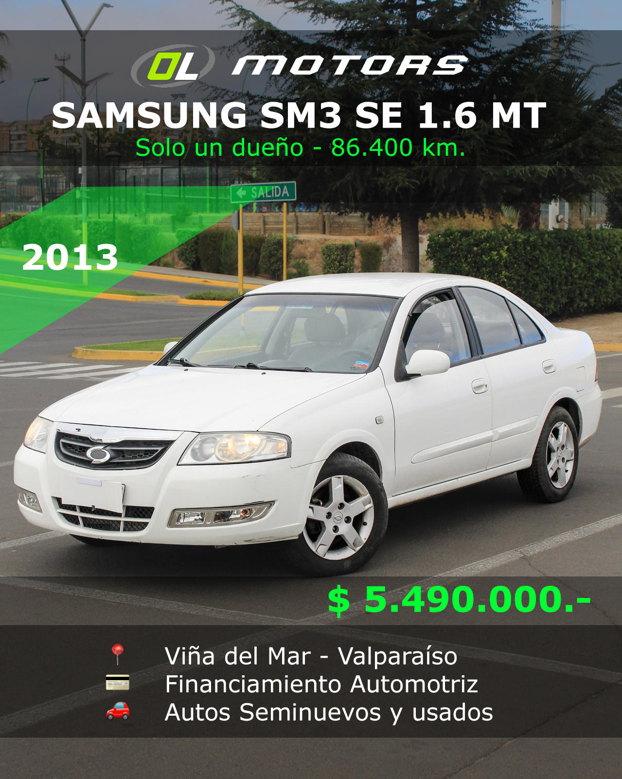 #VentaAuto #SamsungSM3 #OlMotors #AutoUsado #ChileAutos #CompraOnline #GestionDigital